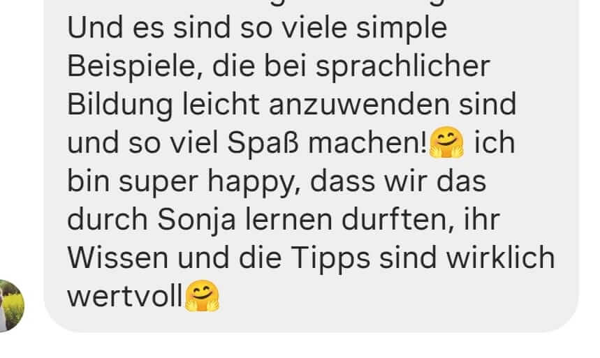 Du siehst, wie dein Kind täglich selbstbewusster wird, weil es sich klar ausdrücken kann. Spiele mit anderen Kindern werden zu Momenten purer Freude, weil dein Kind seine eigenen Ideen sicher aussprechen kann.